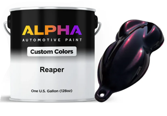 Among the most eye-catching colors in the world of car paint is the Reaper Paint Basecoat.It combines three paint types, pearl, candy, and traditional basecoat, into a single standout formula. This bold fusion delivers an epic custom finish that shines best over a black sealer, offering depth and a candy-like brilliance that turns heads.